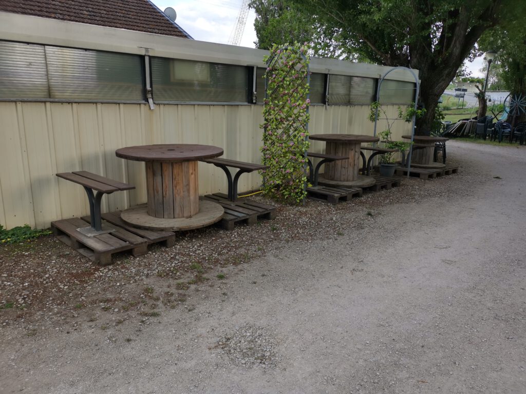 Wir erreichen „Charmes-sur-Rhône“ bzw. den Campingplatz „Les Deux Rives“ gegen 17:30 Uhr und er hat geöffnet. Schon beim Vorbeifahren am Platz auf dem Weg zum Eingang sehen wir die zwei „Mädels“ wieder, die bereits da sind. Wir melden uns an, der Platz ist verhältnismäßig günstig, allerdings passend zum Gesamtbild. Die Sanitäranlagen sind zwar sauber, aber so ziemlich in die Jahre gekommen und auch die Stellplätze müssten dringendst mal wieder geglättet werden. Aber wie schon öfter geschrieben; für eine Nacht vollkommen OK.