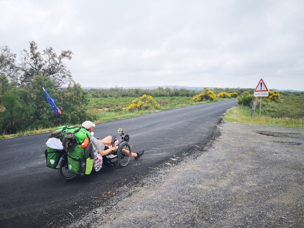 Bei „Portiragnes“ verlassen wir dann wieder die EV8-Route und fahren auf unserem eigenen Track weiter in Richtung „Serignan“ und hier müssen wir sogar dem Brouter Abzüge in der B-Note geben. Es geht über ziemlich abgerockte Nebenstraßen, die dem Anschein nach aus Zeiten von Napoleon stammen. Das kommt wohl davon, wenn man die Strecke möglichst verkehrarm geplant haben möchte.