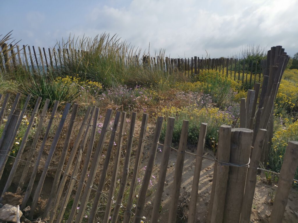 Ein kurzer Strandspaziergang sagt uns: Urlaub machen mussten wir hier nicht, ein echter „Naturstrand“ mit viel angeschwemmtem Holz usw. und nur für die hübschen, blühenden Dünen hier herkommen, wo man nicht einmal textilfrei ins Meer kann?