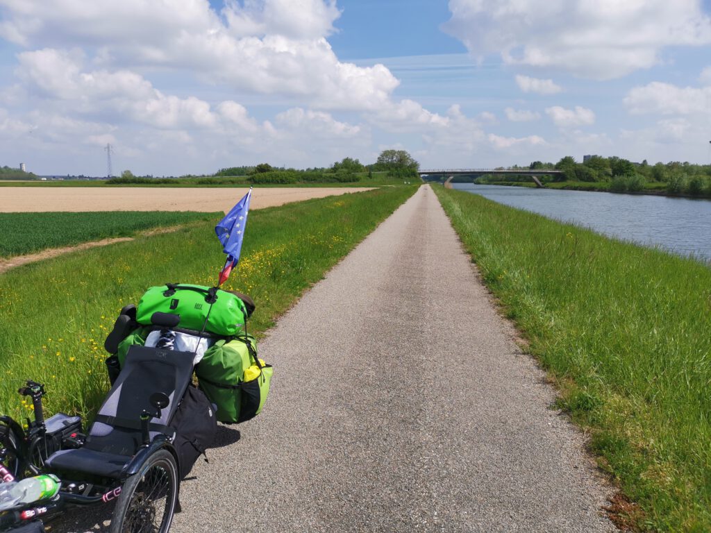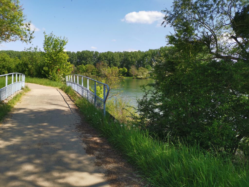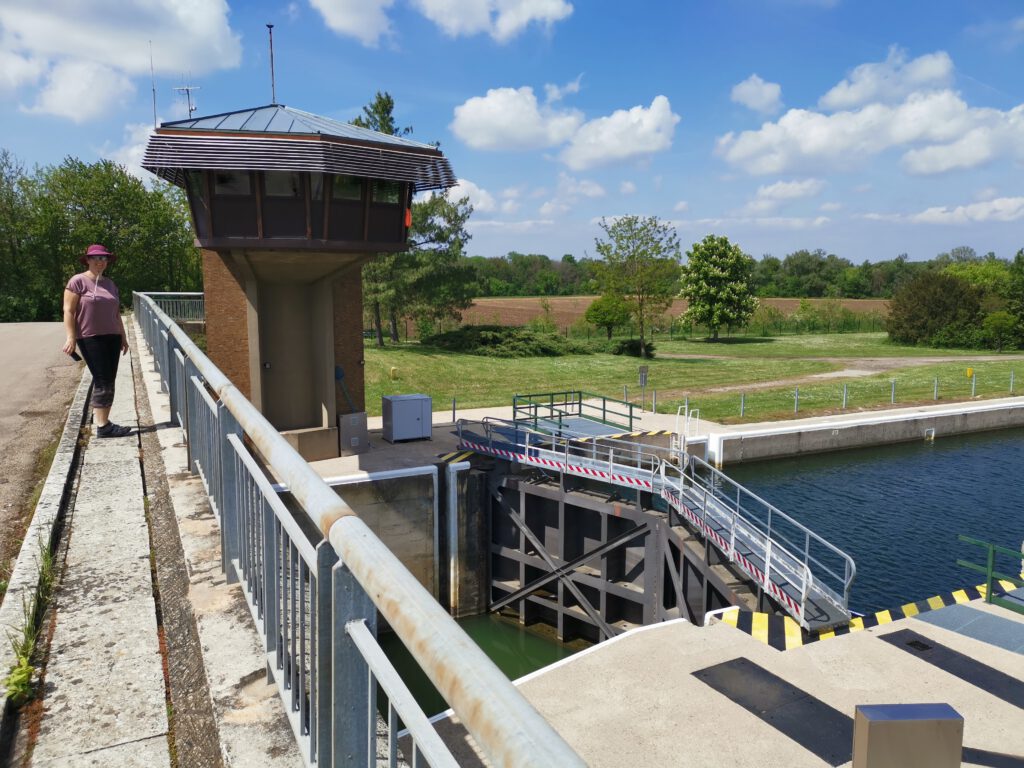 In „Saint-Jean-de-Losne“ sind wir dann noch etwas herumgeirrt, weil alle Straßen vom Campingplatz zur „Hauptstraße“, die wir zurück zum EV6 erreichen mussten, Einbahnstraßen sind. Letztlich erreichten wir dann nach einem kleinen Umweg die Brücke über die Saône und direkt danach den Eurovelo 6.