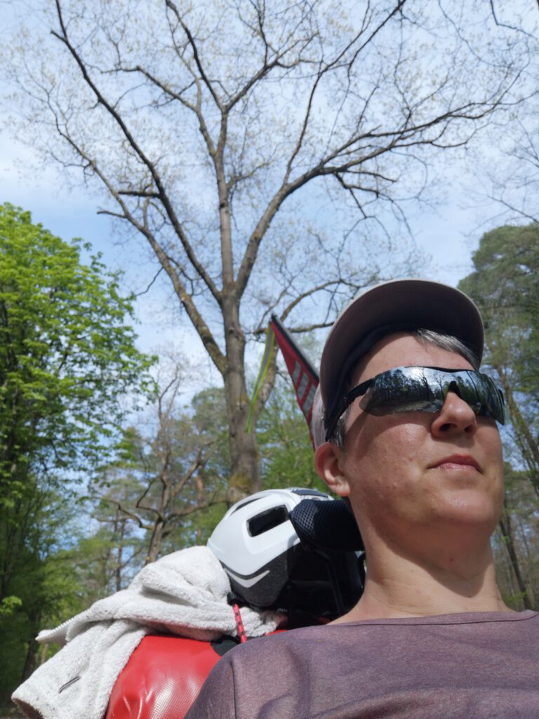 Etwas gerädert auf Grund wenig Schlafs haben wir heute Morgen gefrühstückt, gepackt, bezahlt und uns auf den Weg nach Karlsruhe gemacht. Heute stehen etwas über 54 km auf dem Plan, also in etwas so viel, wie die Tage 2, 3 und 4 – jetzt allerdings unter völlig anderen Bedingungen. Es ist sonnig, schon bei der Abfahrt über 10 Grad warm, es fühlt sich alles so viel besser an. Zur Sicherheit nehme ich nach 10 km noch eine Schmerztablette, obwohl es meinem Knie inzwischen deutlich besser geht – aber bei der Streckenlänge will ich nichts riskieren. Ich weiß, einige werden schreien, zetern, das tut man nicht usw.. Aber für mich ist das in dieser Situation das einzig Richtige…