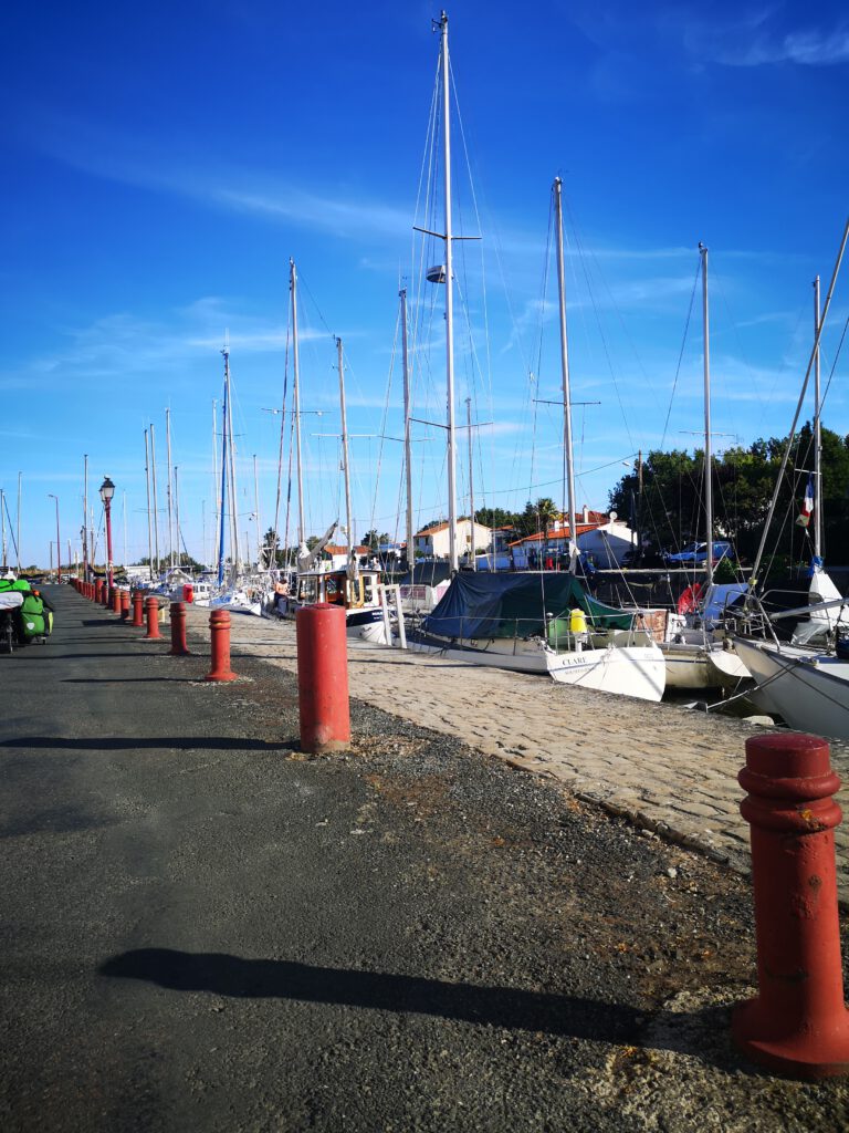Nach einiger Zeit kommen wir dann bei Saint-Michel-en-l’Herm an die Stelle, wo wir abkürzen wollen und wir auf die D wechseln. Dann geht es direkt nach „L’Aigullon-sur-mer“ rüber, wo wir wir im Schatten großer Bäume auf einem offensichtlich kaum noch genutzten Bouleplatz an einer Picknickbank unsere Mittagspause mit Tee und Baguette machen. So lässt es sich leben!