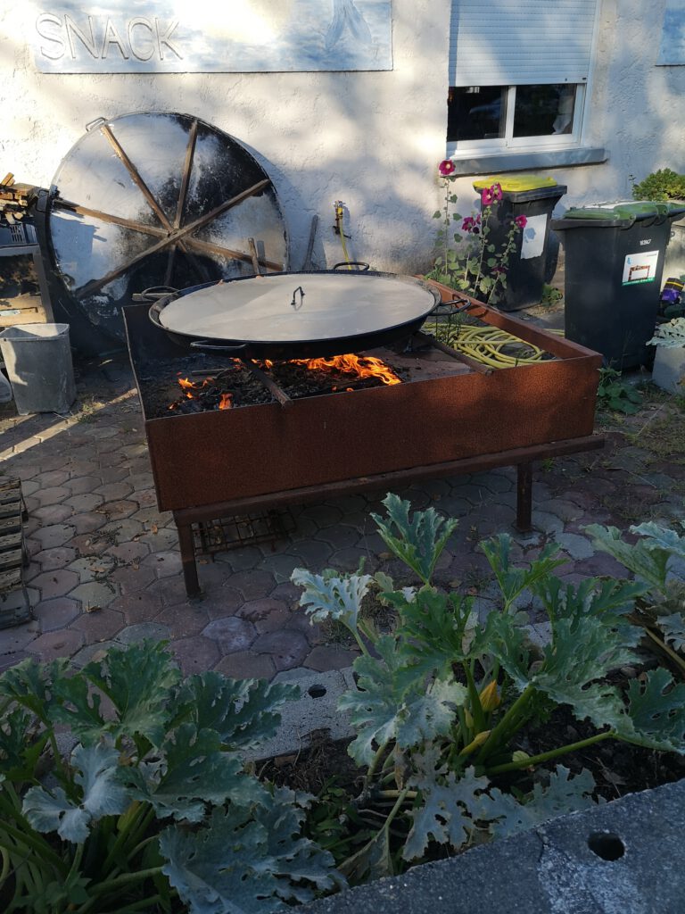 Das Essen ist dann wirklich toll, es gibt Paella – eigentlich nicht unbedingt mein Ding weil es meistens „fischige“ Inhalte gibt und das Ganze in einer Basis aus Reis. Hier muss ich aber gestehen, dass es wirklich toll schmeckt. Und so haben wir mit fast allen Besuchern des Campings zusammen gesesssen, gegessen und einen sehr, sehr schönen Abend erlebt. Sehr nette Gespräche mit unseren englischsprachigen Nachbarn, aber auch mit einigen der natürlich zahlreich anwesenden Franzosen.