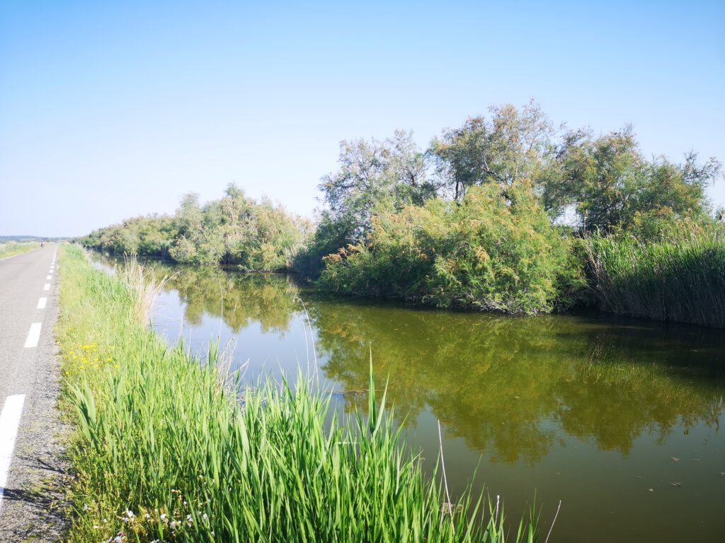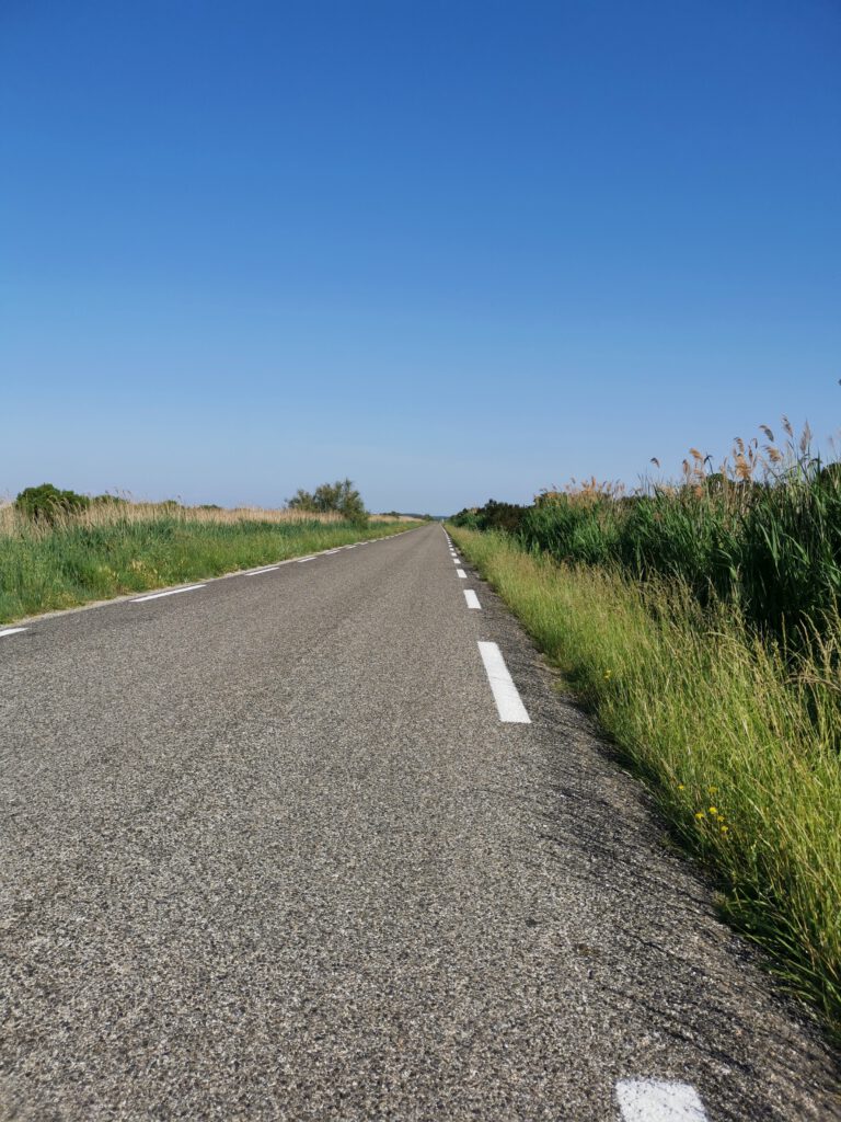 Kurz hinter „Saint Gilles“ kommen wir in die Randbereiche der Carmarque, alles flach wie Holland.