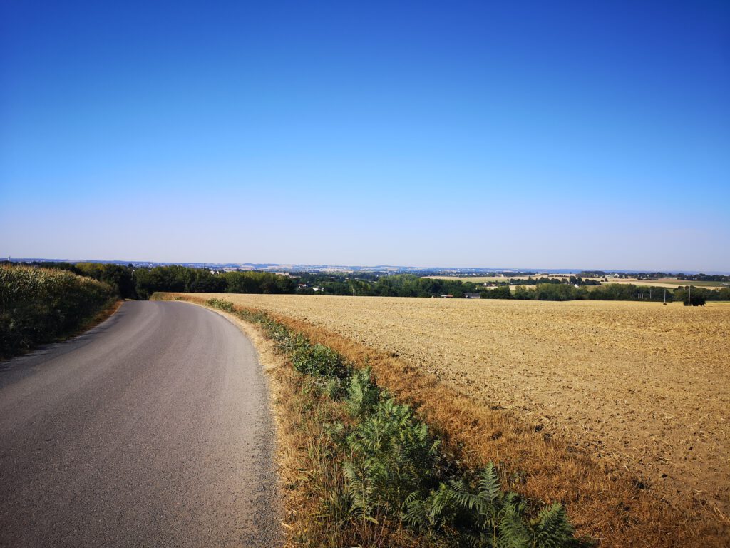 Die Nacht hier in Broons war sehr ruhig, wir sind wieder früh hoch um erneut pünktlich unterwegs zu sein. Die heutige Etappe zu unserem nächsten „Kurzurlaub“ in Pallieter ist allerdings, wie schon geschrieben, auch nur 26 km lang. Aber so haben wir wenigstens die Möglichkeit die Hitze des Tages schon mal textilfrei auf dem Platz zu verbringen.
