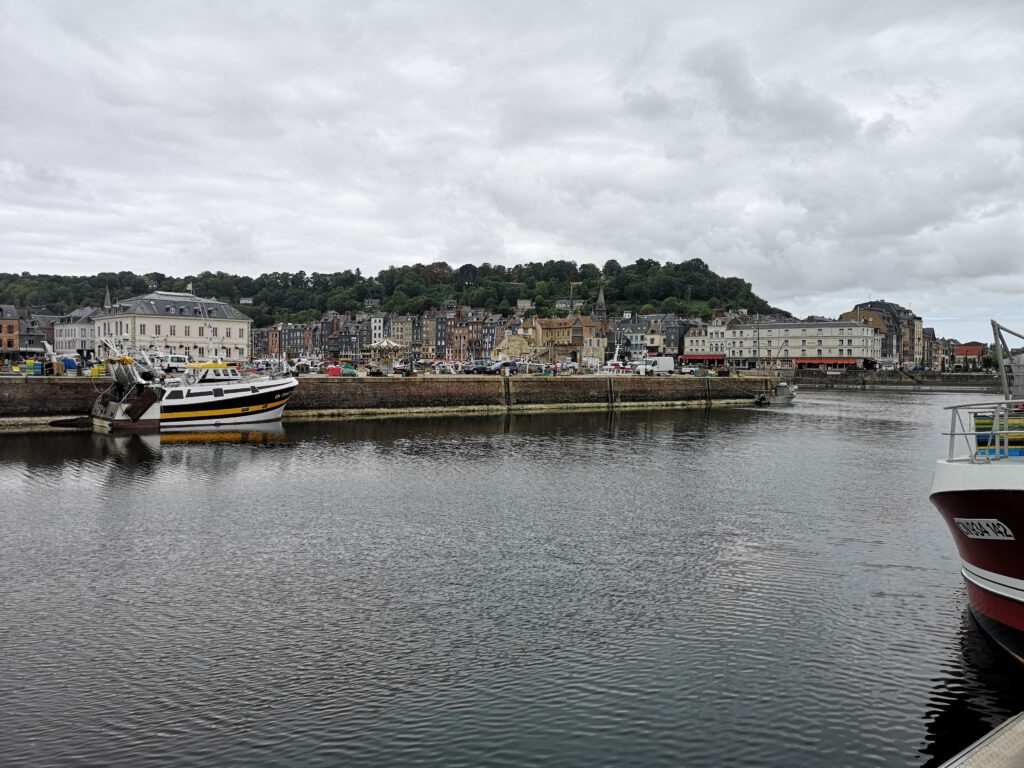und streifen dann „Honfleur“. Hier ist wieder viel Betrieb, viele Menschen durchstreifen den Hafenbereich, wo unser Weg entlangführt. Der Ort hat sich einen gewissen Charme erhalten, es stehen noch einige ältere Häuser, allerdings stören auch (Industrie?)Ruinen im Hafenbereich das Bild.